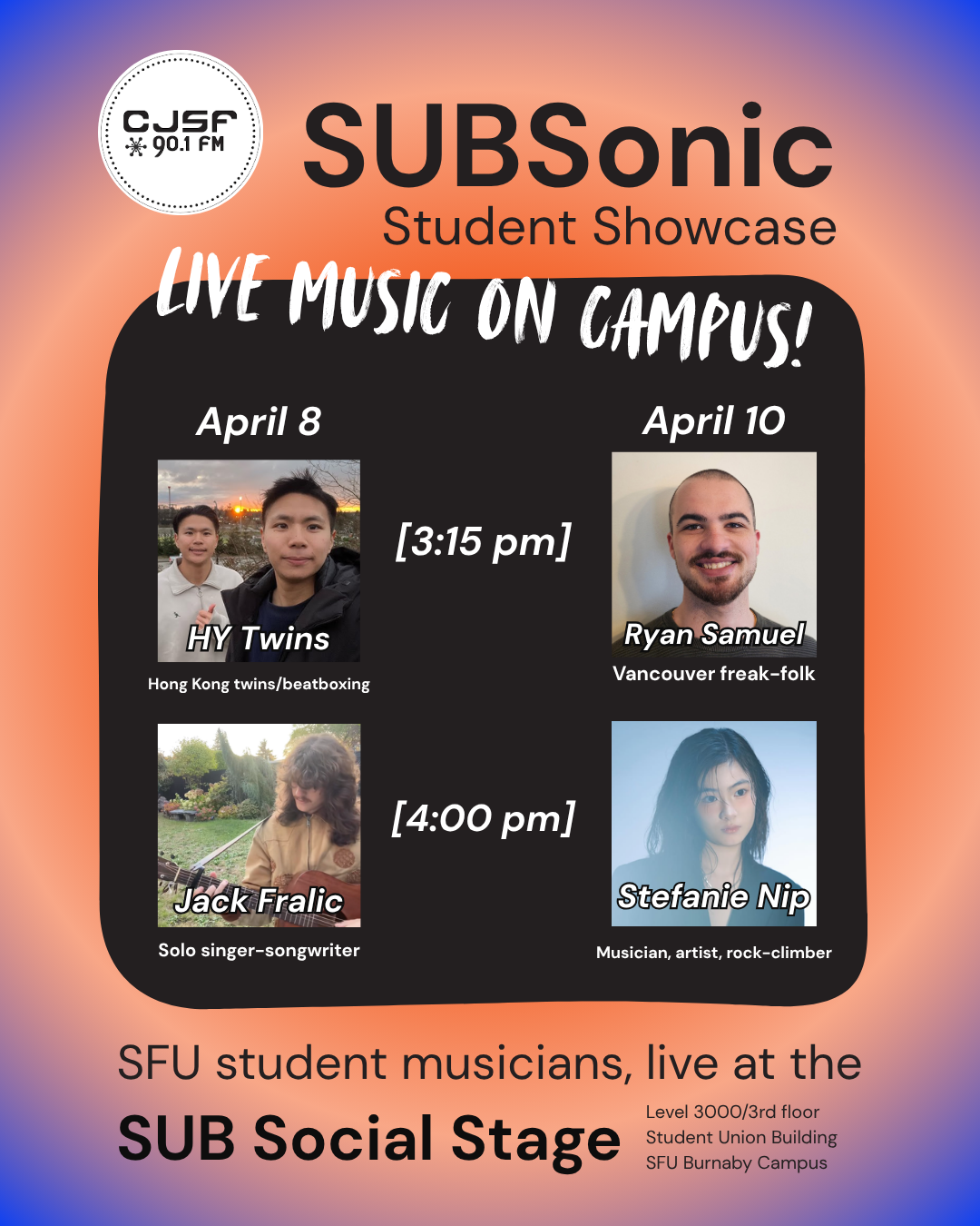 CJSF's SUBSonic Student Music Showcase Launches Apr. 8 + 10!